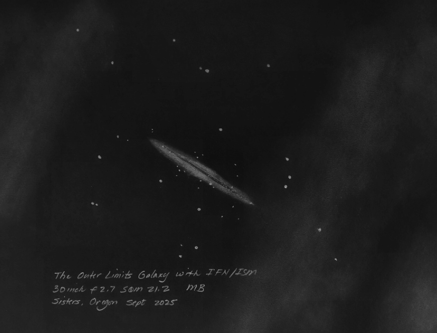 After rediscovering the Pleiades Bubble and finding the Andromeda Twist, and having read Mandel's inspiring story of discovering IFN with deep digital camera images, one night I, on a whim, aimed my 10.5 inch F2.7 scope at M81/M82, wondering if just maybe in my wildest imagination I could detect IFN visually. I put my eye to the eyepiece: there were clouds of nebulosity everywhere. Stunned, I looked up at the sky and peered into the forest a few feet away. Was I the first on Earth to detect IFN visually? Not quite, as it turns out. William Herschel, perhaps the greatest observer of all time, saw a few of them, his little known 52 Nebulous Regions. For the whole story, see my webpage on Herschel's Ghosts.
